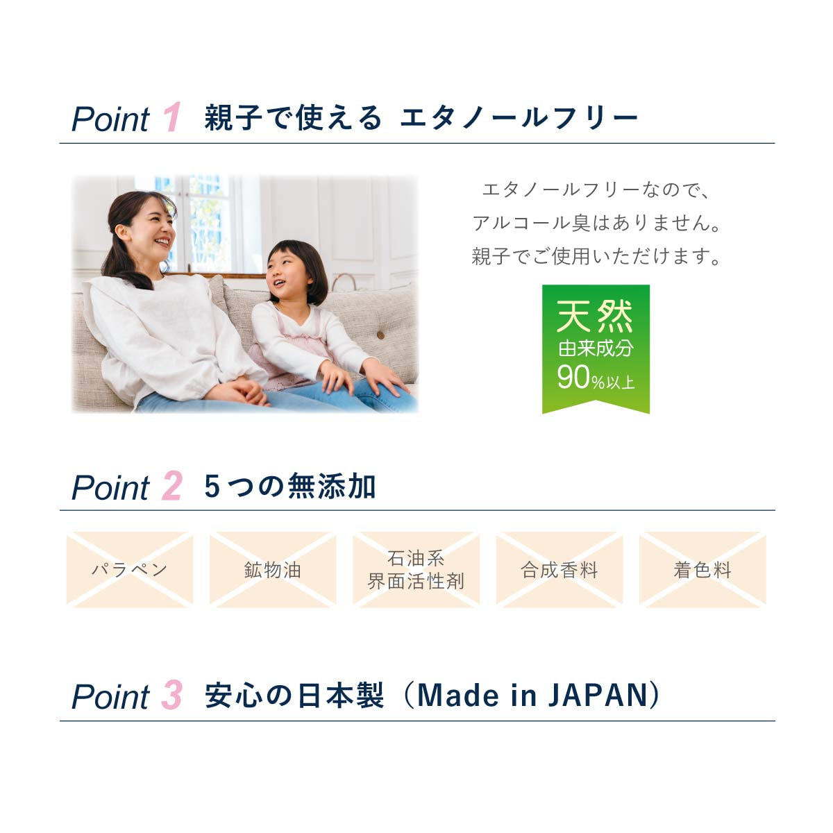 ・鉱物油フリー・パラベンフリー・シリコンフリー・エタノールフリー・無着色・合成香料不使用