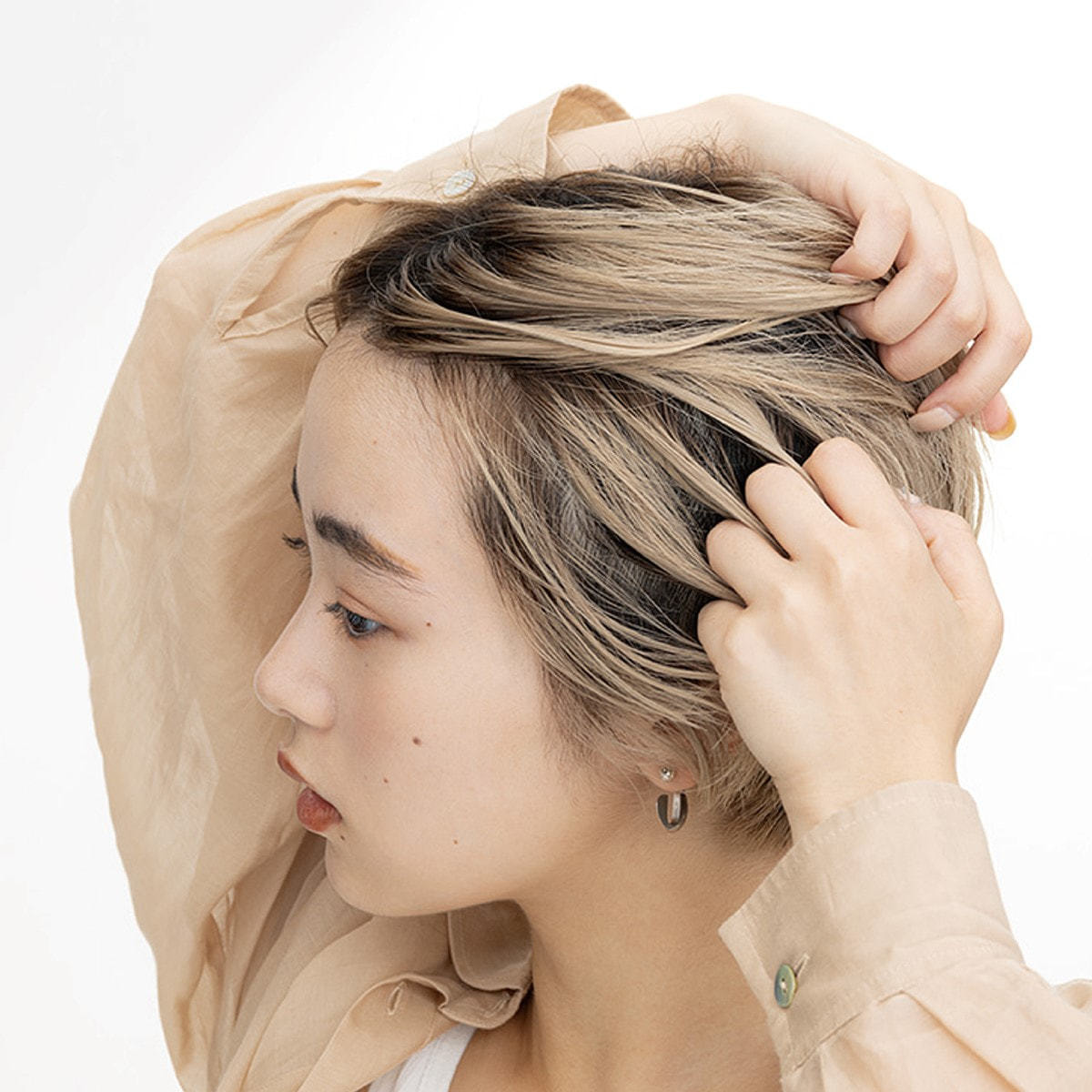 つくった束感・毛流れを一日中持続させます。